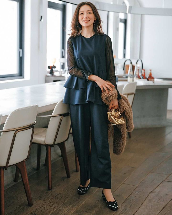 ②絶妙な肌見せが大人にちょうどいい「ニットアンサンブル」