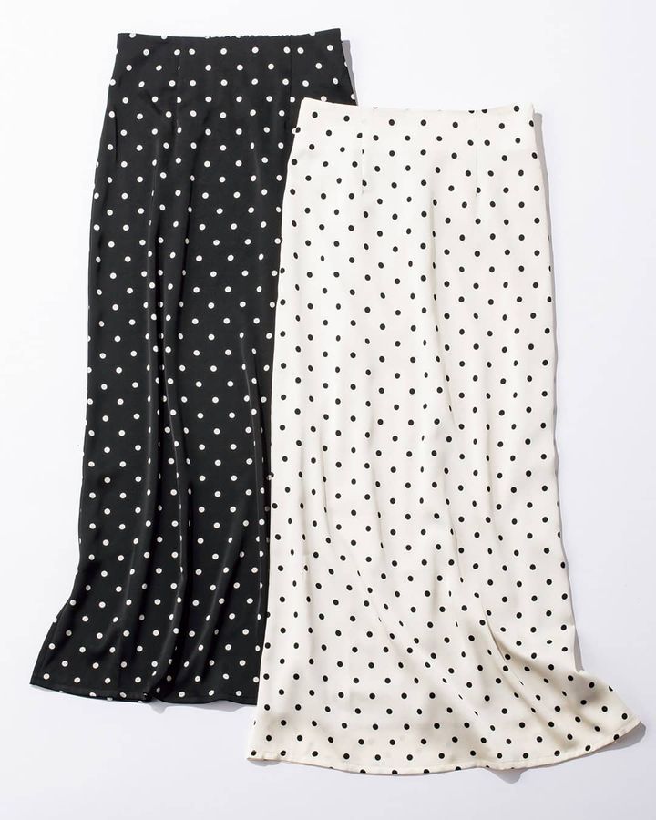 ⑤華やかなのにイージーケアで日常使いしやすい「サテンスカート」