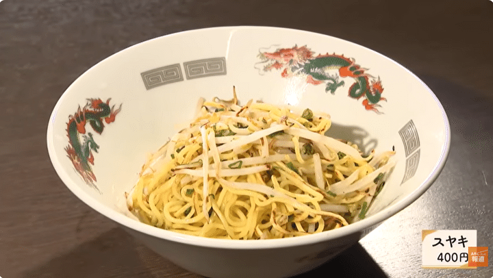 滋賀・甲賀市にある「谷野食堂」。このお店には、多くのお客さんに親しまれている名物があります。それは「スヤキ」という麺料理。自家製の中華麺ともやし、ねぎを炒め、塩で味を整えただけのシンプルなメニューです。