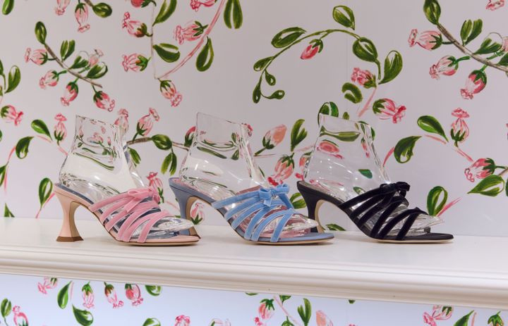 会場に並ぶのは、プリーツやリボン、柔らかなパステルトーンが印象的な、夢のようなラインナップ。上質な素材と高度な職人技が融合し、足元からロマンチックな世界へいざなう一足に仕上げられています。
