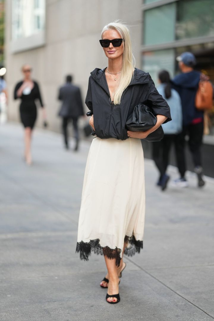 スポーティな要素を取り入れつつ、フェミニンなムードを纏ったスタイルも、来シーズンに向けた注目ルック。軽やかなシルエットのワンピースやスカートにスポーティなジャケットを重ねれば、肩肘張らないのにモード感のあるホリデールックが完成する。アクセサリーはあえて控えめに、動きやすさと洗練されたフェミニンさのバランスをキープ。スポーティな遊び心が加わることで、定番のパーティースタイルに新鮮なリズムが生まれ、自分らしい装いを楽しむ余白が広がる。