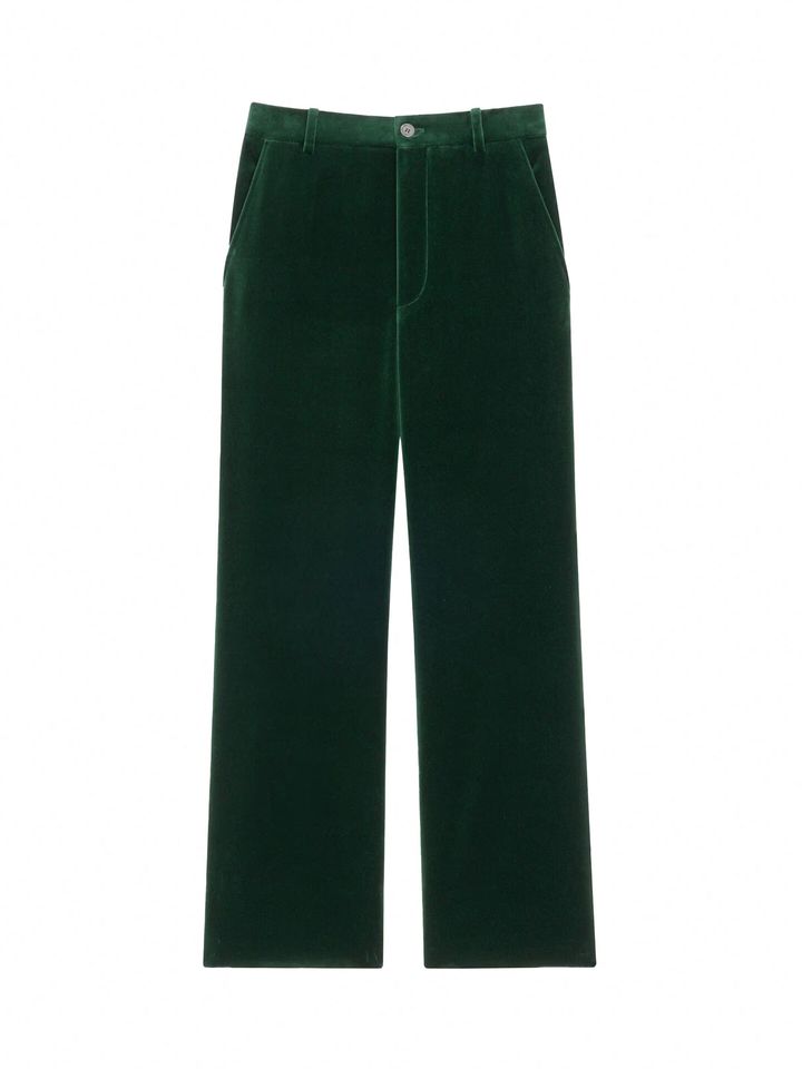 滑らかなコットンベルベットで仕立てられたこのストレートパンツは、センタークリースのシャープなラインで、控えめながらも確かな存在感を放つ一着。ミッドライズとストレートレッグのシルエットが足もとまで美しく伸び、ホリデーの夜でも「華やぎすぎず、上品にモードに仕上げたい」という気分にぴったり。ダークトーンや光沢素材のトップスとも相性が良く、ワードローブの幅をさりげなく広げてくれる。