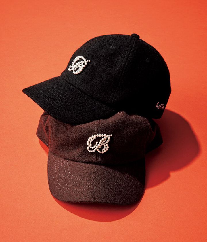 ウールキャップは、ビーズ刺繍がリッチでかわいい。深いかぶり心地で万人に似合う形です。キャップ(ともにマディソンブルー)