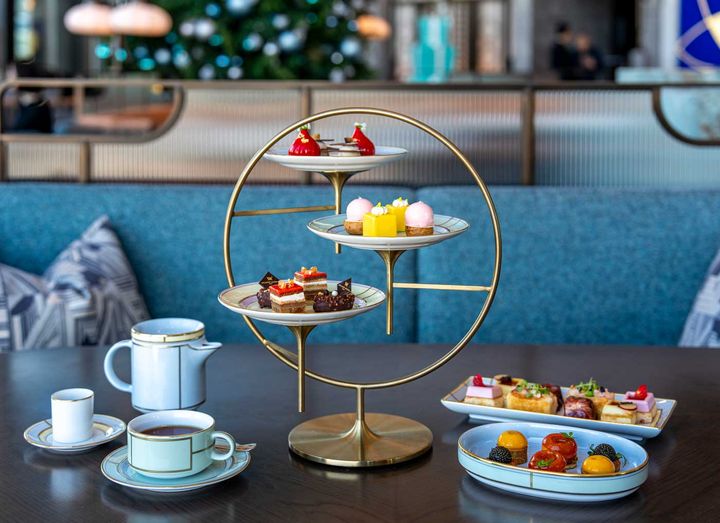 まるでツリーのオーナメントのようにかわいらしい、8つのスイーツと5つのセイボリー。「ウォルドーフ・アストリア大阪」のためだけに特別にブレンドされた紅茶とともにいただきます。 Waldorf Astoria Osaka
