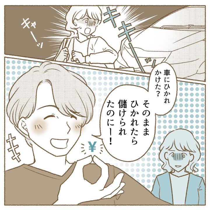 ある日の外出中、あやうく車にひかれそうになったママ。どれだけ気をつけていても起こってしまうことではありますが、きっと怖かったことでしょう。何事もなくて本当によかったですね。