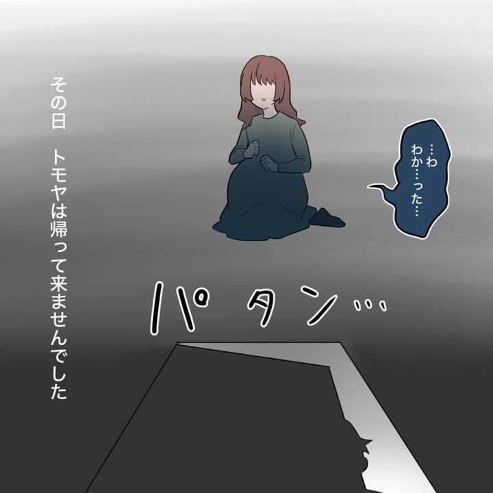 トモヤの言葉に、私は目の前が真っ暗になります。いつ赤ちゃんが産まれてもおかしくない妻と骨折した甥っ子、2つを天秤にかけて、トモヤは甥っ子を選びました。私って、トモヤにとって何なんだろう。悲しみを通り越して涙も出ません。その日、トモヤが帰ってくることはありませんでした。