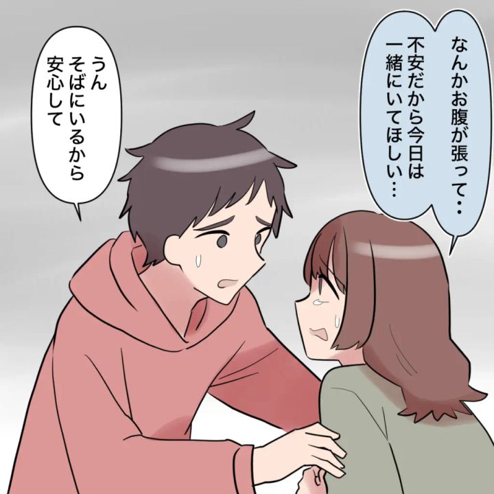 いつお産が始まってもおかしくない状況に直面し、一気に不安が押し寄せてきます。「不安だから今日は一緒にいてほしい・・・」涙目でそう訴えると、トモヤは私の目をしっかり見て「そばにいるから安心して」と言ってくれました。