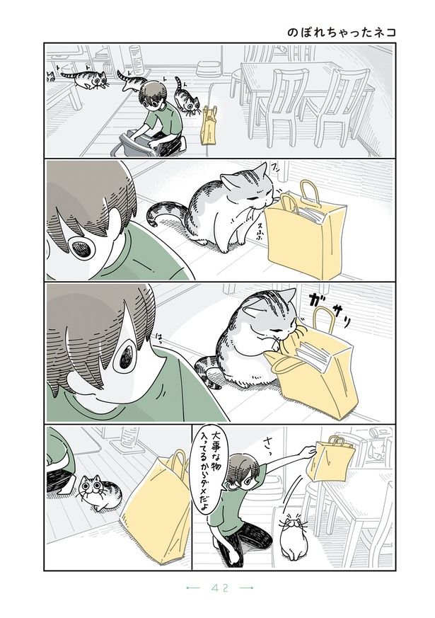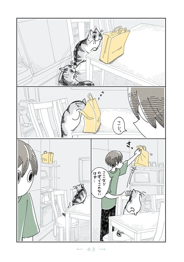 紙袋に興味津々の猫。高いところに移動させても凄まじいジャンプ力でお手の物/夜は猫といっしょ5(57)