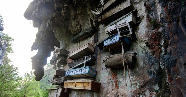 フィリピンマウンテン州サガダにある吊るされた棺/ Credit: ja.wikipedia