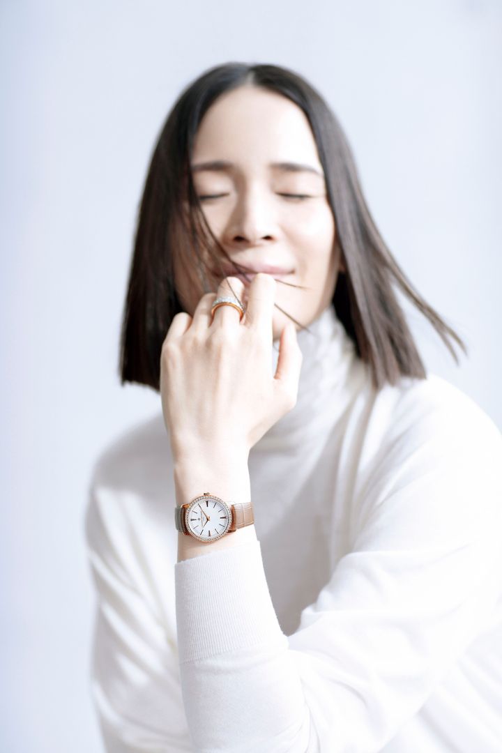 約20年前、齋藤さんがパリで手にした“タンク フランセーズ”。「カルティエ」の創業150周年を記念して発表されたモデルで、スクエア形のダイヤルと、ケースを一体化させたメタルブレスレットが特徴。無駄のないデザインながら、品を備えた存在感を放ちます。新たに登場した日本限定モデルは、インデックスにダイヤモンドをセッティング。マザーオブパールとのコンビネーションが“白”の文字盤を完成させ、よりしなやかな表情に仕上げられています。