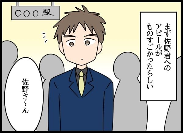 そこで加藤部長から佐野が子会社へ出向していることを聞かされます。加藤部長が言うには、サトコが辞めてから横田の言動はさらにひどくなり、業務中、休憩中、帰宅中問わず佐野に付きまとうようになったようで…。