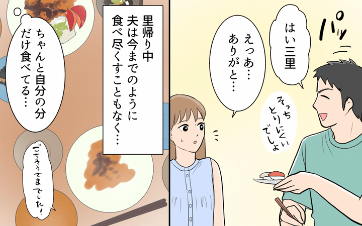夫は「これからは気をつける」と反省したような顔をしていました。その後、私の実家でも誰かのお皿に手を伸ばすことはなく、本当に反省したのだと…そのときは思ったのです。