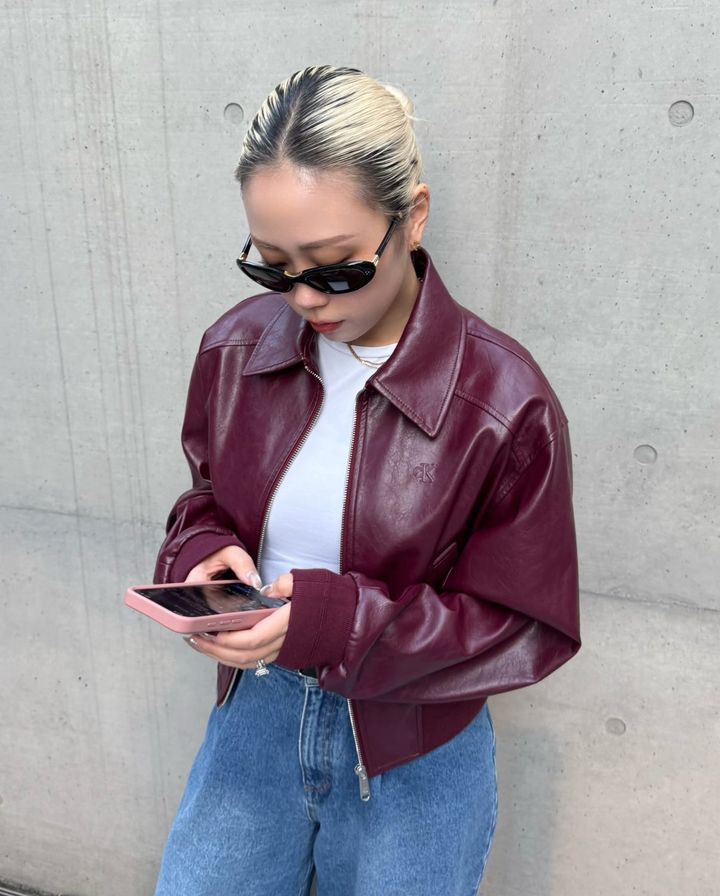 海外でも話題沸騰中の「カルバン・クライン」のレザージャケットをゲットしました♡ 深みのあるダークレッドとコンパクトなクロップド丈の組み合わせに一目ぼれ。軽くて動きやすく、シンプルなTシャツにさらっと羽織るだけで、ぐっと秋らしいムードに仕上がります。さらに、ハイウエストボトムと合わせれば自然とスタイルアップできて、美脚効果も抜群!