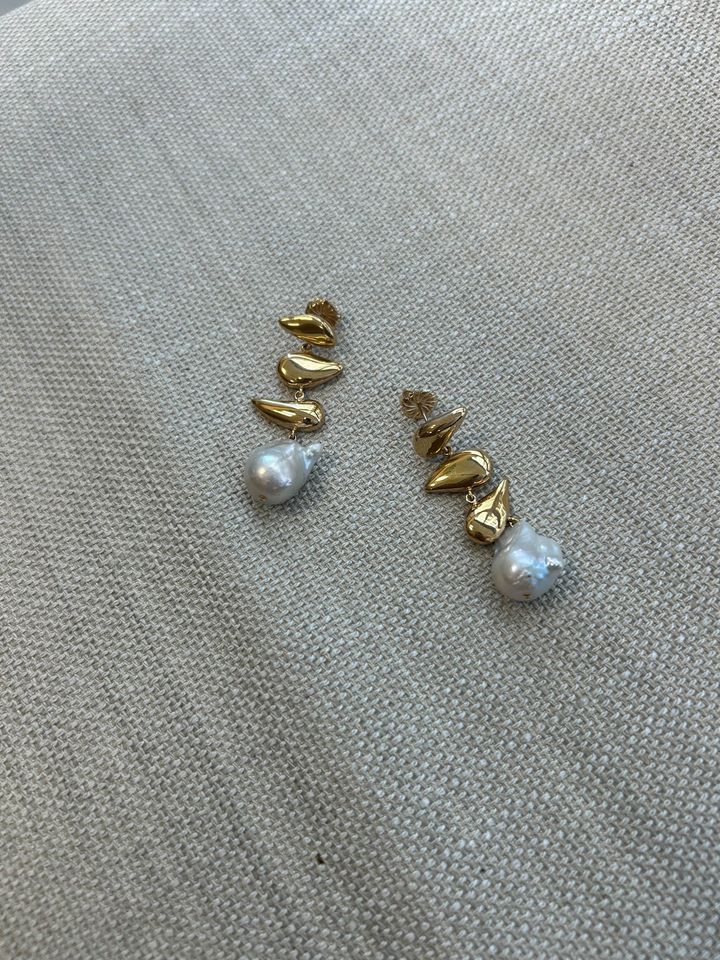 バロックパール×ゴールド・ヴェルメイユのピアスは、耳元でさりげなくモダンにきらめいて、ひとつ着けるだけでぐっとこなれた雰囲気に。ジャケットなどのマニッシュなスタイルにも、夏のラフなコーデにも不思議なほどマッチして、着こなしを格上げしてくれます。スタイリングが単調に感じられがちな夏だからこそ、「アグメス」のようなコンテンポラリーなジュエリーで“味変”を楽しんでみてはいかが?