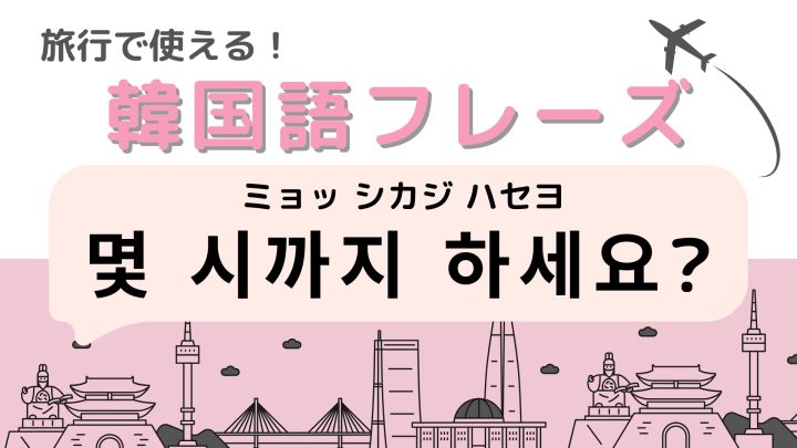 「몇 시까지 하세요?(ミョッ シカジ ハセヨ)」は、「何時まで営業していますか?」という意味の韓国語です。