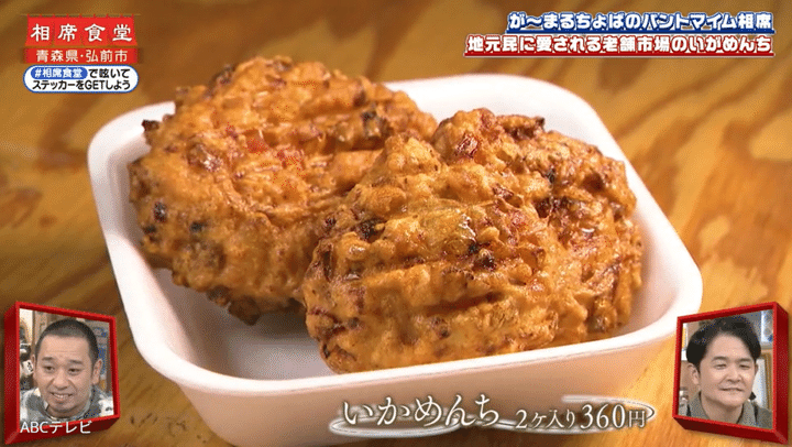 が〜まるちょばは、弘前のソウルフード“いがめんち”を男性から“あーん”で食べさせてもらい、表情やサムズアップでおいしさを表現。男性へお返しに同じくいがめんちを食べさせてあげ、2人は初対面とは思えないほど仲良く笑いあった。