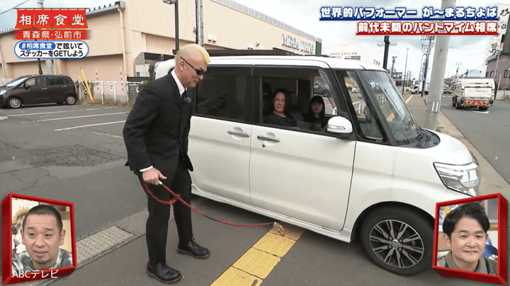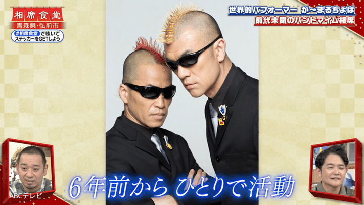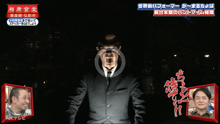 バラエティ番組『相席食堂』(ABCテレビ)に、あの世界的男性パントマイムパフォーマーが登場。現在1人で活動する彼は、前代未聞のロケに挑む中で、初対面の男性に不意打ちでキスをし……!?
