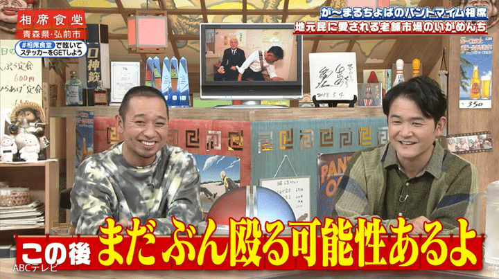 なお、が〜まるちょばの前代未聞の一切話さないパントマイムロケVTRは、『相席食堂』12月2日放送回で公開された。