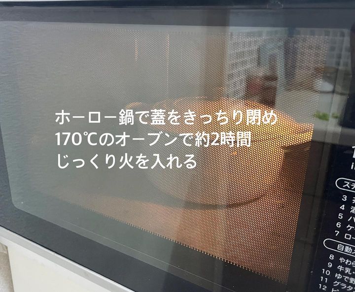 4. 蓋をしっかりし、170℃に予熱したオーブンで2時間ほど火を入れる。