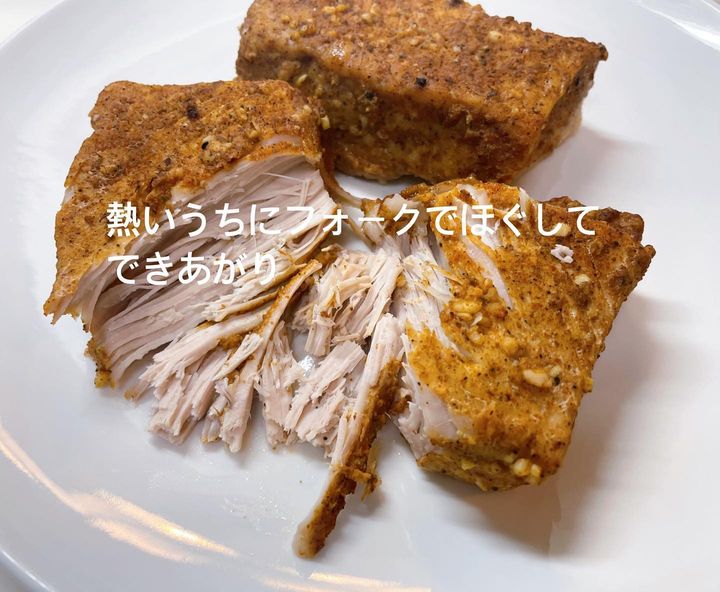 5. 焼き上がったポークをフォークでほぐしてできあがり。