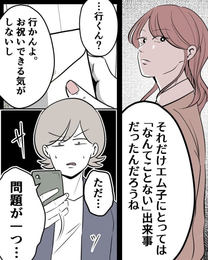 しかし、エム子から「高校の頃からなんも変わってない」「受験の頃は荒れてたよね。私が大人になってあげた」と言われ、あの時の謝罪は空っぽのものだったと知って傷つく。