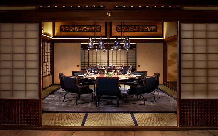 明治41年に建てられた藤田財閥の創始者・藤田伝三郎氏の京都別邸だった「夷川邸」をレストランフロア内に移築した空間。 Hearst Owned