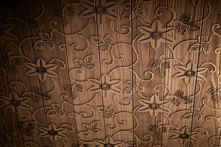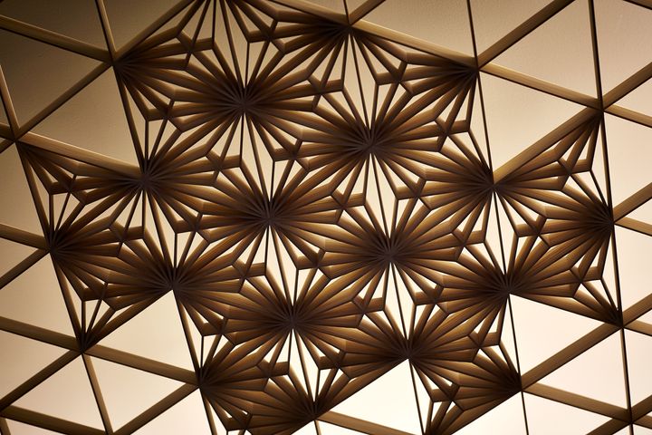 宴会場やホワイエの天井を飾る、「Maruni(丸二)」が手がけた京唐紙の型。 Hearst Owned