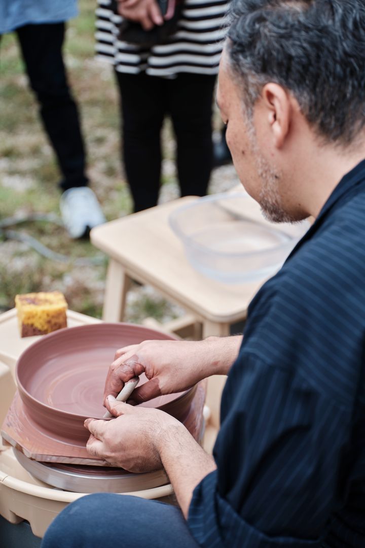 今回提供された器の多くは、茶道具を中心に手がけてきた京焼の窯元・嘉祥窯(かしょうがま)の四代目当主・森岡嘉祥氏によるもの。嘉祥窯では、穴窯の中で大量に発生する灰が自然の釉(うわぐすり=陶磁器の表面に塗っておくもの)となり、器の表情を生み出す。火と土と灰が偶然に反応して生まれるその釉調は、まさに“自然がつくり出す美”。その哲学は、器づくり体験に触れるとより深く理解できる。
