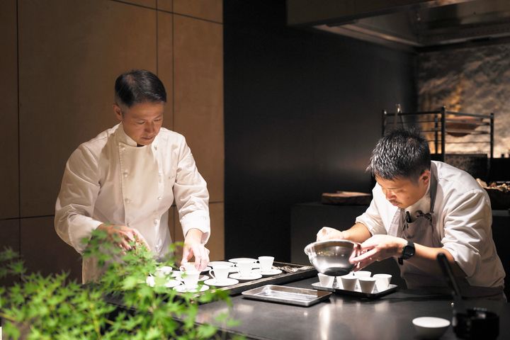 写真左から、「シェフズ・テーブル by Katsuhito Inoue」を率いる井上勝人ヘッドシェフ、柏木シェフ。 HIROTO NISHIKAWA