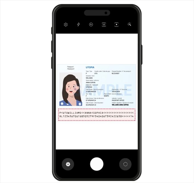 パスポートの写真をアップロードする際、上の画像にあるようにパスポート下部の赤枠で囲まれたピンク色の部分も入るように撮影しましょう。アップロードが完了すると、パスポート情報が自動で反映されるので、念のため間違いがないか目視で確認します。
