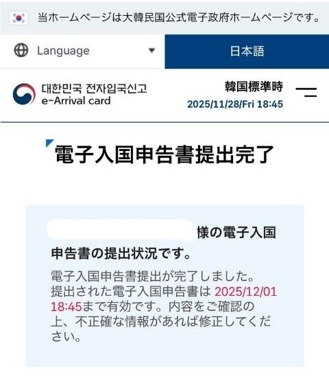 3. 【韓国・紙の入国カードは2025年末まで】2026年からオンラインのみ!電子入国申告書(e-Arrival Card)の入力をお忘れなく
