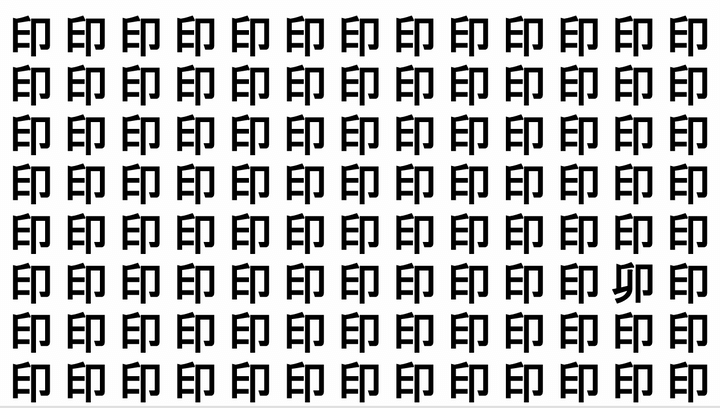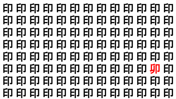 たくさんの「印」の中に、よく似た別の漢字が1文字だけ隠れています。