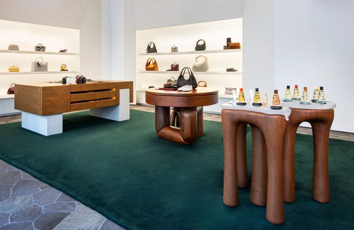 店内には、アトリエで職人たちが実際に使用するテーブルから着想を得た“ラ タヴォラ(La Tavola)”が設えられ、Pre Spring 25コレクションの新作やホリデーシーズンを彩るアイテムが一堂に並ぶ。
