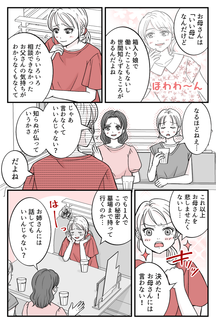 <20周年前に突然死!>父の不倫にふんわり納得の私。姉に打ち明けたら…「最低!」【まんが】