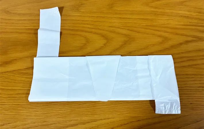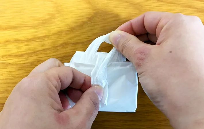 1.ビニール袋を持ち手部分の根元まで2回折る