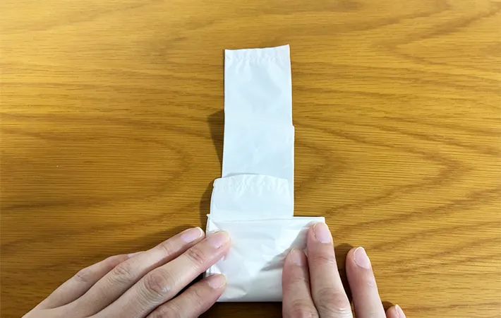 そのままさらに2回折り込んでコンパクトにまとめましょう。