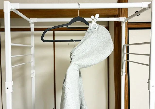 パーカーを効率よく乾かすには、生地が重ならないようにすることが大切。