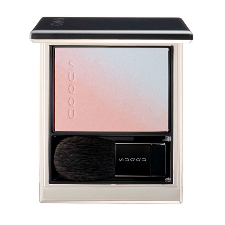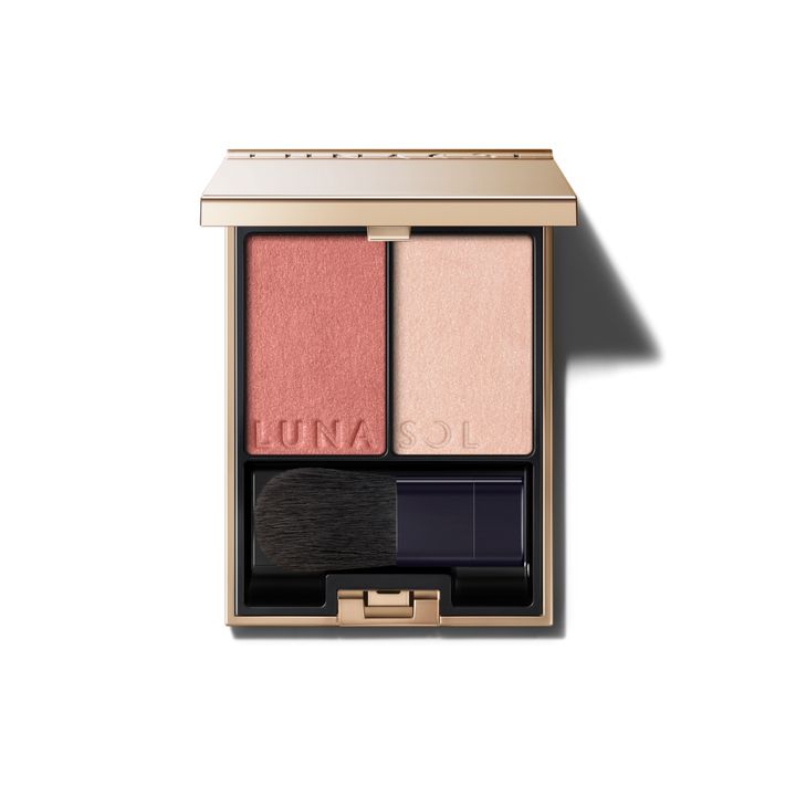 微細な粉体とオイリーレス処方により、なめらかなグラデーションが叶うパウダーブラッシュ。写真の08 透眺は、透け感を与えるミルキーカラーのハイライターと、柔らかな血色感を宿すチークで美しく頬を彩ります。温かみのある×透き通るようなブルー×温かみのあるコーラルで、上品さを残しつつピュアな発色と艶感を楽しんで。