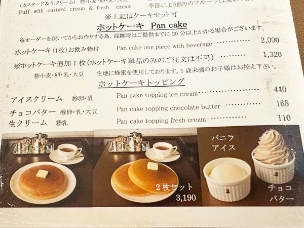 「ホットケーキ(1枚)お飲み物付)」2,090円
