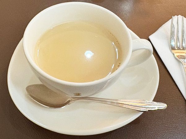 セットのドリンクは、コーヒー、紅茶、カプチーノ、ロイヤルミルクティーなど。うれしいのは、ドリンクのおかわりが自由なこと。ホットケーキを待ちながら、紅茶でゆったり過ごす時間。心がほどけていきます。ロイヤルミルクティーは、茶葉の風味とミルクの穏やかな風味が溶け込んで、ほっこりしました。