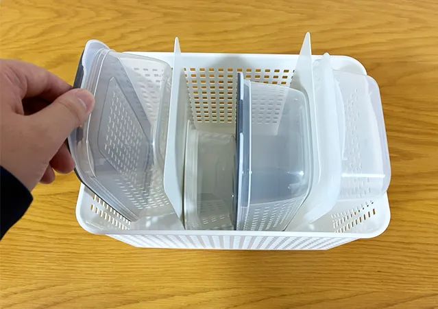 実は、100円ショップでも買える文房具アイテムを使えば、保存容器をすっきり収納することができますよ。