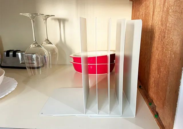 ブックエンドは本を支えるだけではなく、キッチン収納でも頼れる存在です。