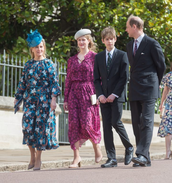 セント・ジョージ礼拝堂で行われたイースター礼拝に家族揃って出席。マゼンタカラーの花柄ドレスに、ヌードカラーの小物を合わせたルイーズは、ベレー帽でかわいらしさもプラスしていた。