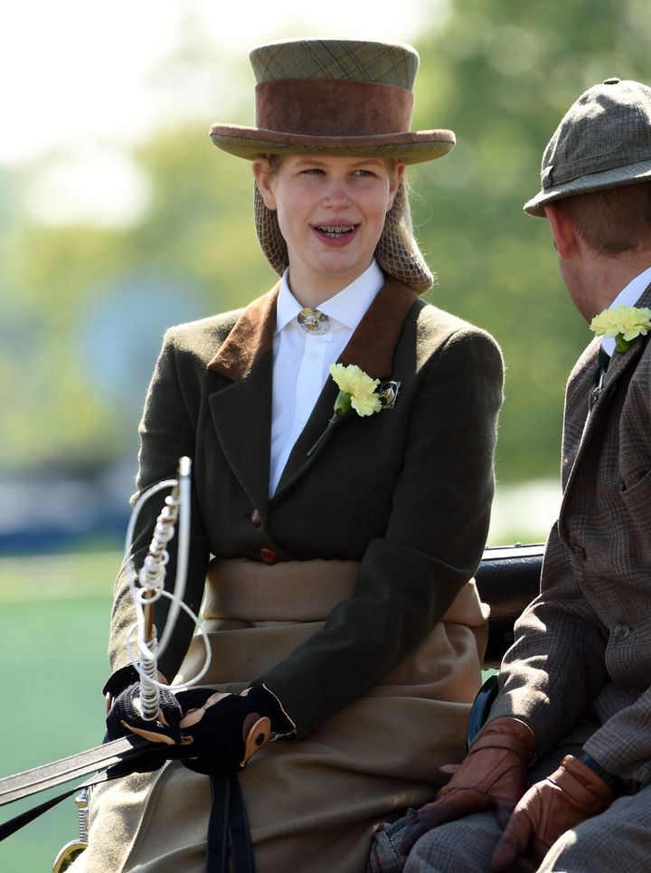 馬車を引いてレースを行う「キャリッジドライビング」の選手でもあるルイーズ。ウィンザー城ホームパークで開催されたロイヤル・ウィンザー・ホース・ショー4日目の「シャンパン・ローラン・ペリエ・ミート」に出場。照れたような笑顔が可愛らしい!