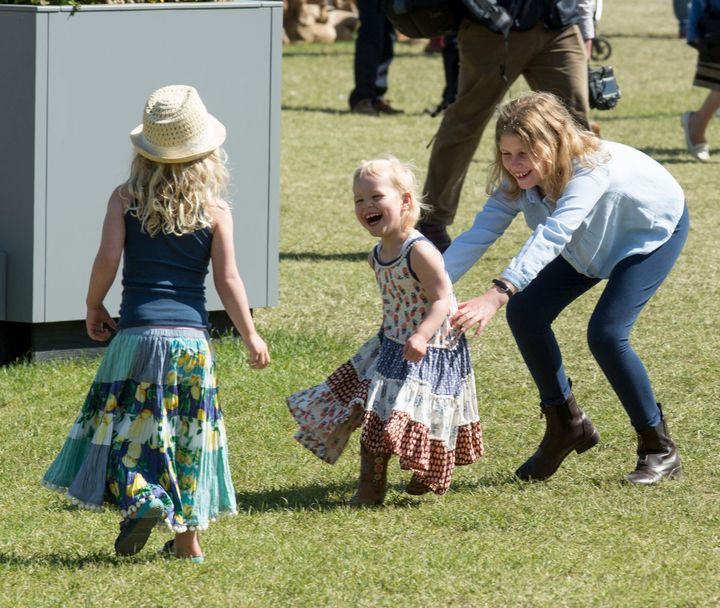 ロイヤル・ウィンザー・ホース・ショーで、従兄ピーター・フィリップスの子どもたち、アイラ&サバンナ・フィリップス姉妹と戯れるルイーズ。ジョージ王子らの子守りもしているとう報道もあるルイーズは、子どもたちの扱いも上手なようだ。