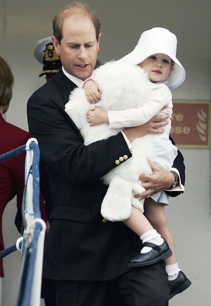ヘブリディーズ諸島を巡るクルーズ旅行を終え、父エドワード王子に抱かれながら下船した時の1枚。真っ白な洋服をまとい、まるで天使のよう!