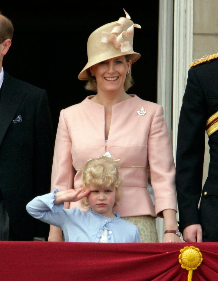 トゥルーピング・ザ・カラーのバルコニー登場した際、敬礼するルイーズ。この日のソフィー妃のハットは、2022年6月2日にルイーズも着用した(前述)。
