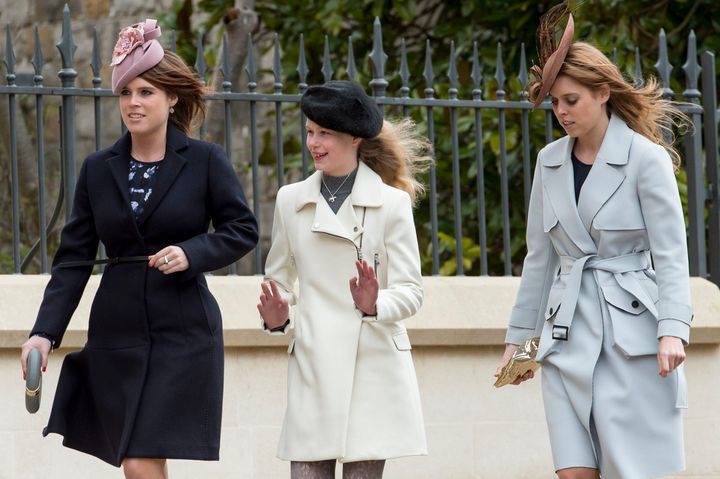 イースター礼拝後に、セント・ジョージ礼拝堂をあとにするルイーズ。従姉のユージェニー王女&ベアトリス王女と共におしゃべりしながら、とっても楽しそう...!