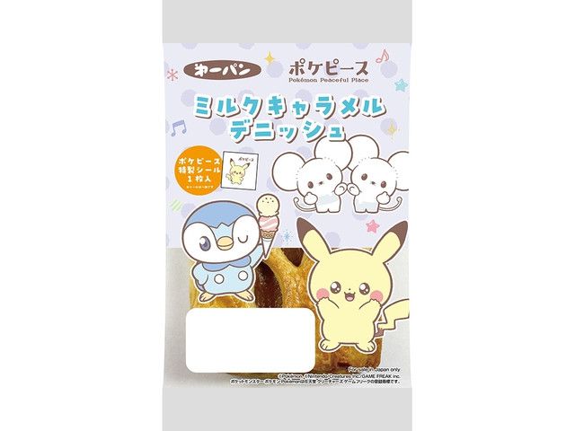 ミルクキャラメルクリームをデニッシュ生地で包みました。 ポケピース特製シール1枚入り。 ©Pokémon. ©Nintendo/Creatures Inc./GAME FREAK inc. ポケットモンスター・ポケモン・Pokémonは 任天堂・クリーチャーズ・ゲームフリークの登録商標です。