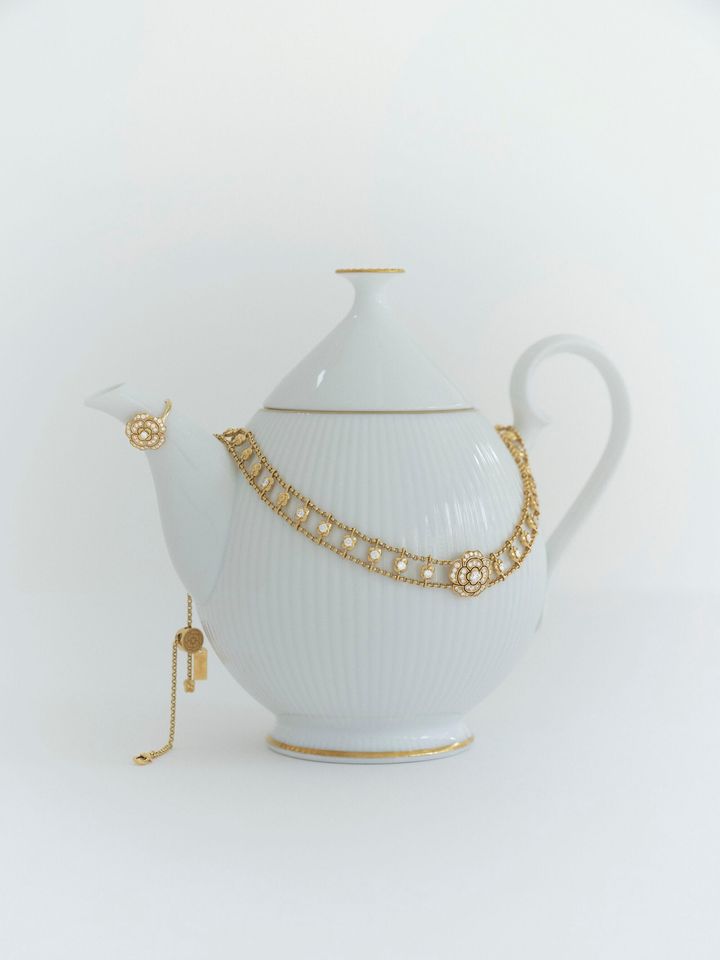 ジュエリーは共に“カメリア コレクション” ネックレス(YG×ダイヤ)¥7,425,000 リング(YG×ダイヤ)¥1,094,500/共にシャネル(<a href="https://www.chanel.com/jp/" target="_blank">シャネル カスタマー ケア センター</a>) Hearst Owned